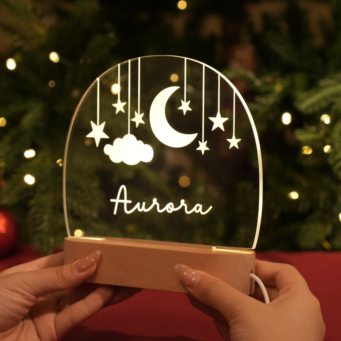 Custom Moon and Star Nightlight, Personalized Clouds Night Light with Name