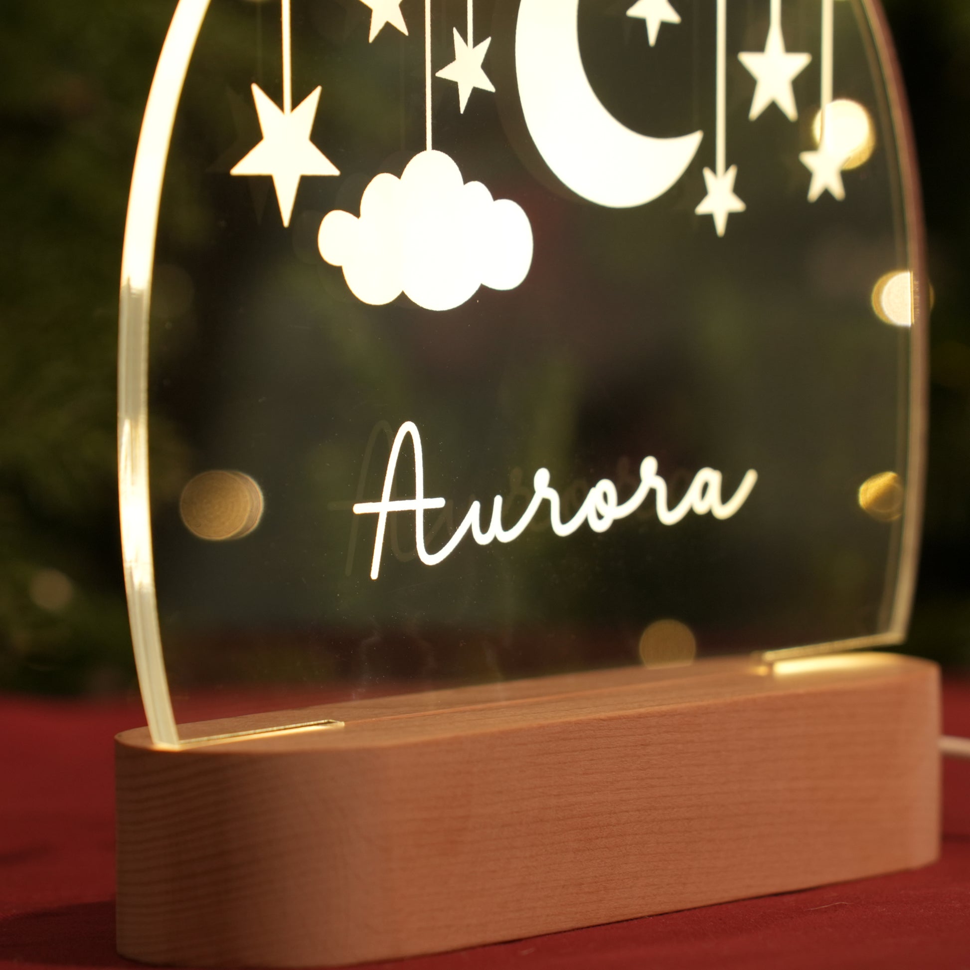 Custom Moon and Star Nightlight, Personalized Clouds Night Light with Name