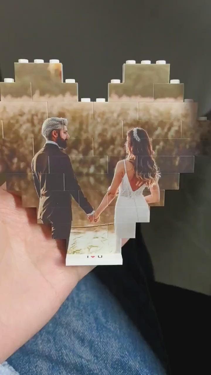 Heart Shaped Photo Blocks, Personalized Picture Building Block with Stand, Cute Gift for Couple