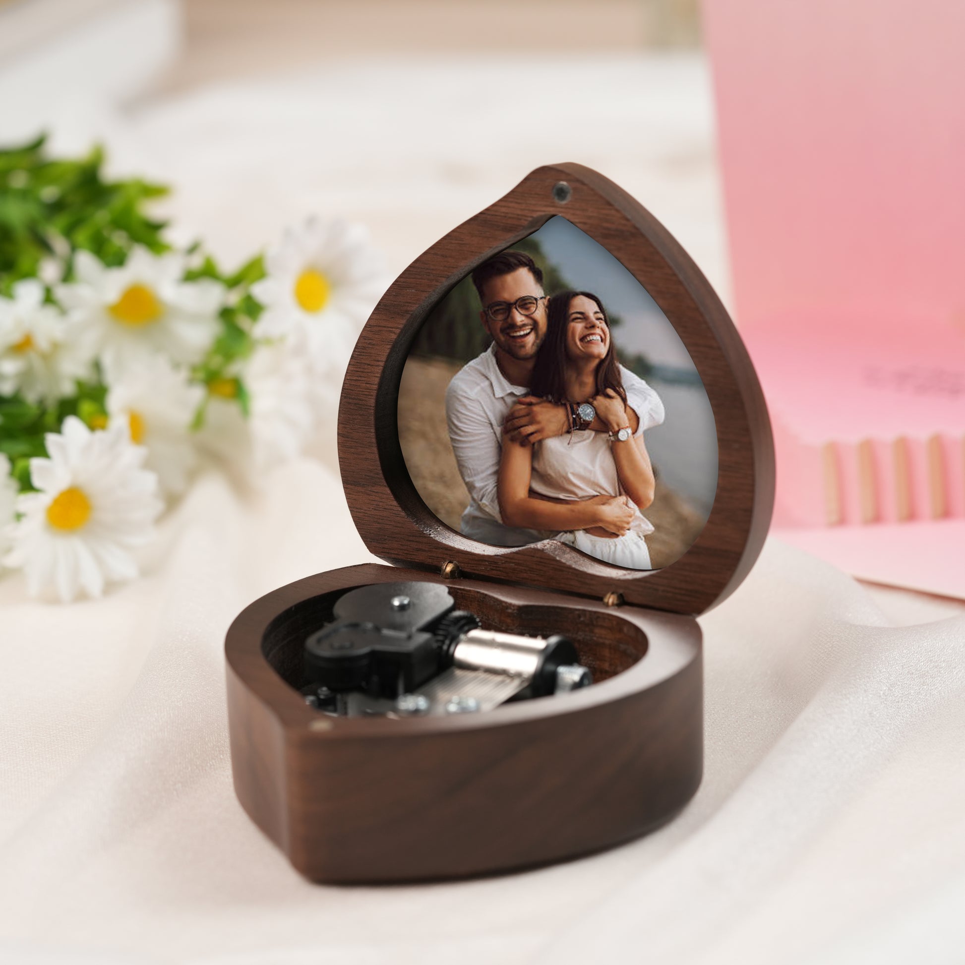 Choose from jewelry boxes, wedding ring boxes, heart-shaped boxes and more. Customize your music box with personal photos, engravings, and meaningful melodies that will play flawlessly on the high-quality mechanism.
