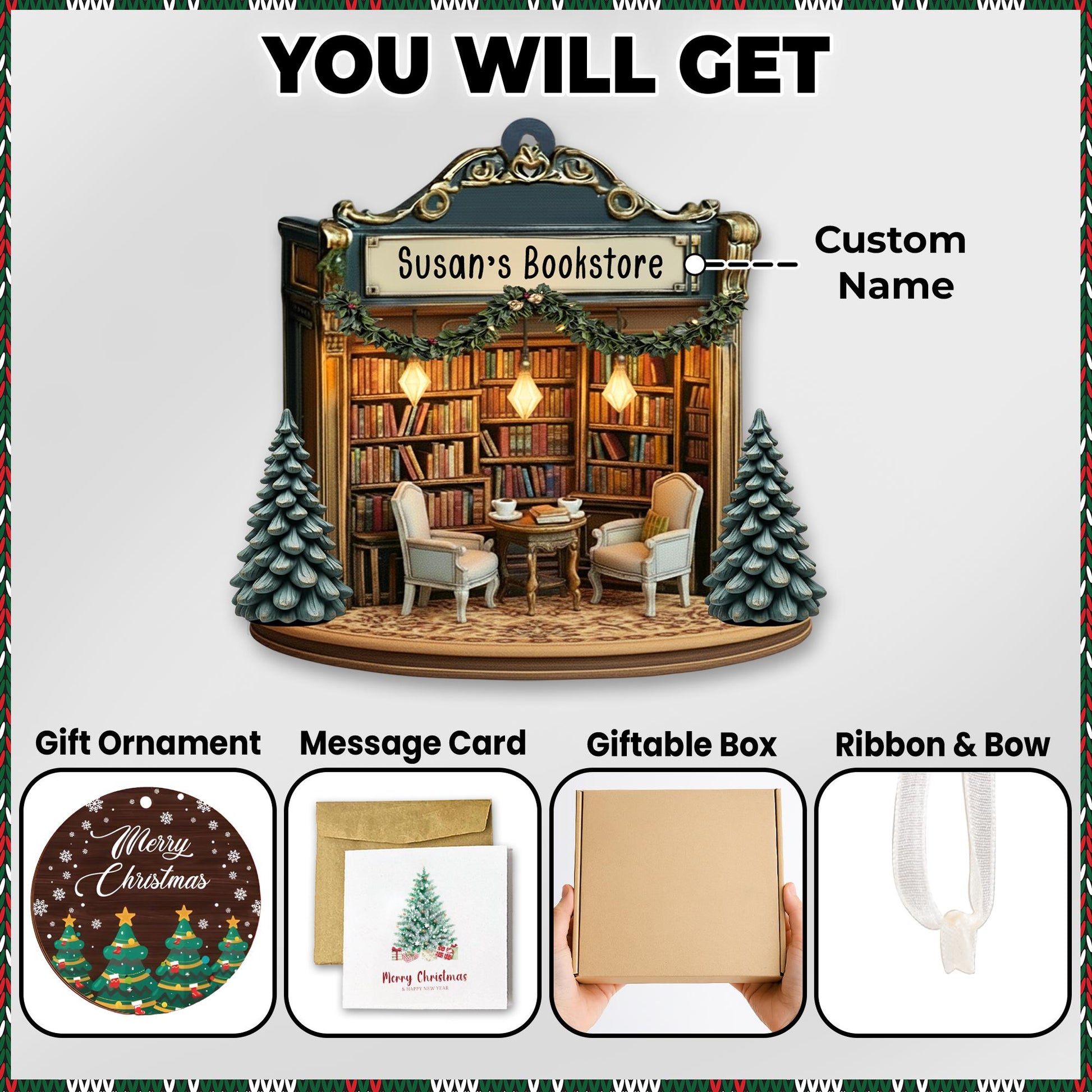 Personalized Bookstore Ornament, Bookish Gift, Christmas Ornament Gift For Book Lovers, Booknerd Gift Custom Book Shop Ornament, Xmas Gift