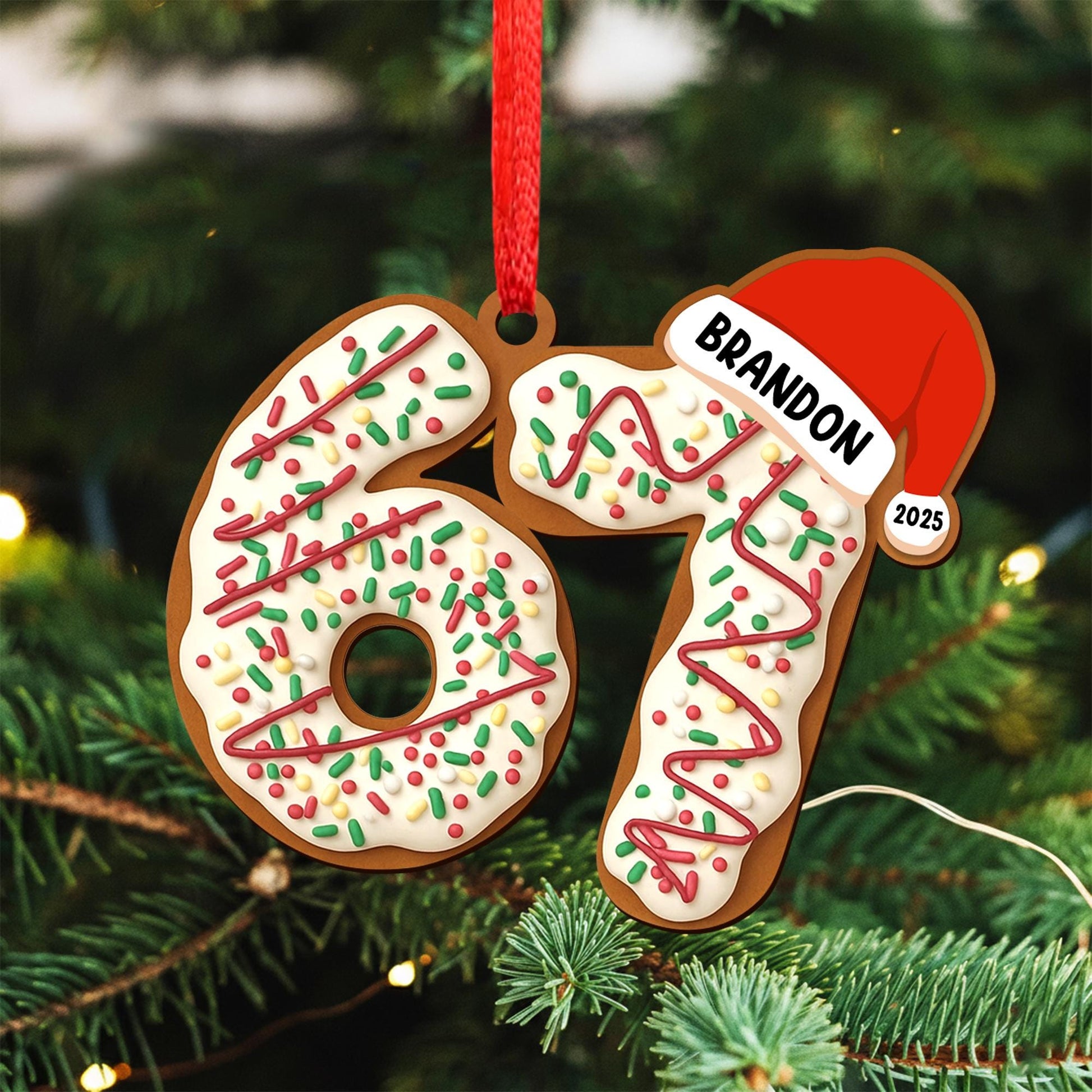 Personalized Name Six Seven Ornament, Funny Six Seven 67 Ornament, Christmas Santa 67 Ornament, Gen Z, Gen Alpha Teenager Ornament