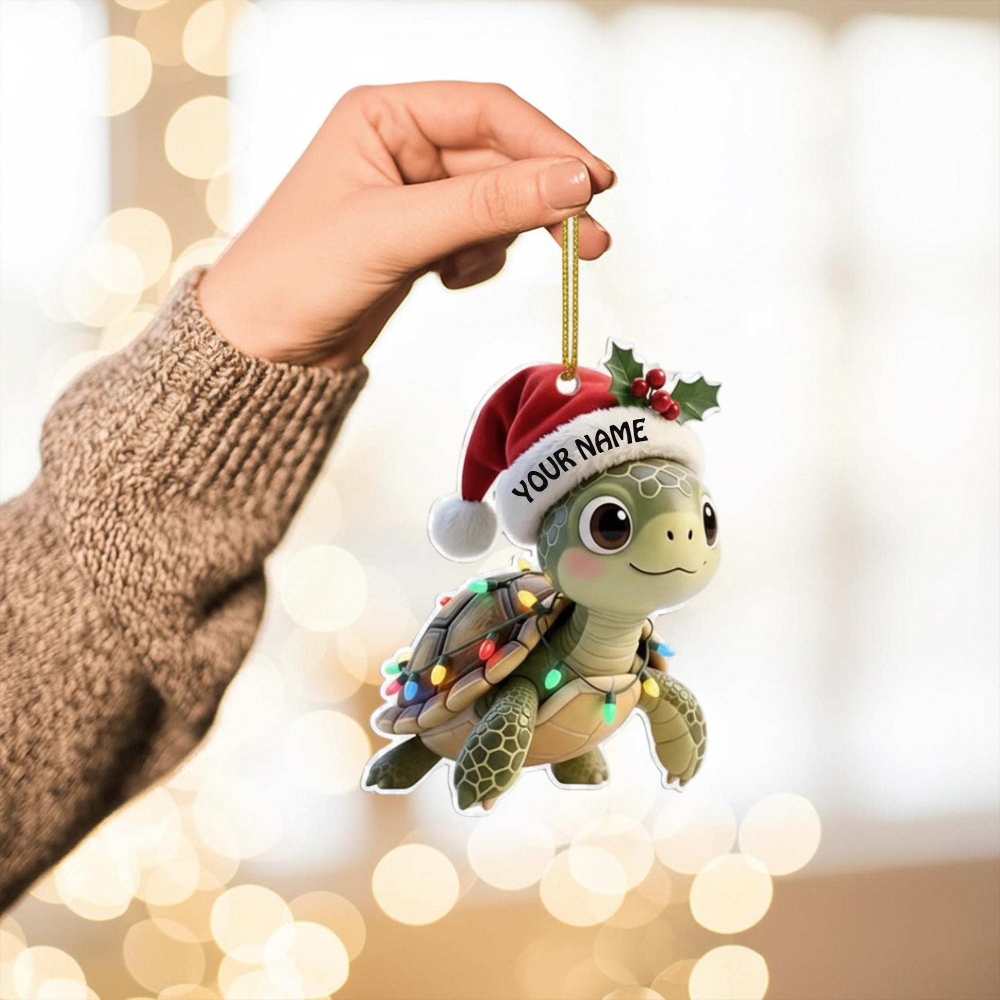 Personalized Turtle Christmas Ornament, Cute Custom Name Animal Ornament, Holiday Gift for Kids or Ocean Lovers