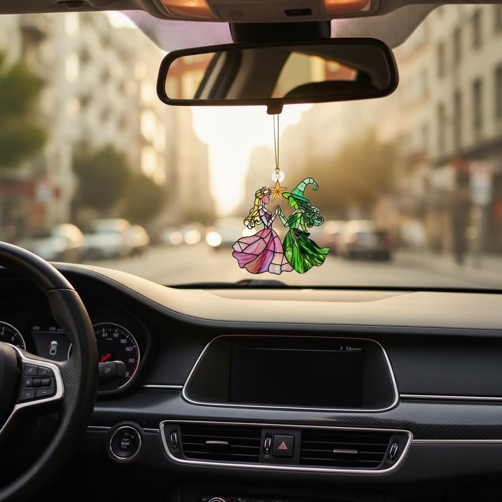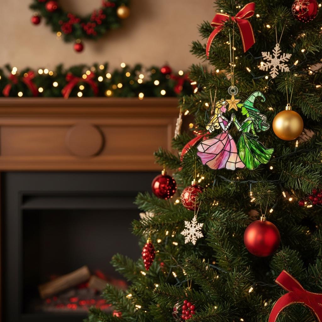Elphaba and Glinda Stained Christmas Ornament, Wizard of Oz Wicked Musical Fan Art Decor, Xmas Tree Window Decoration