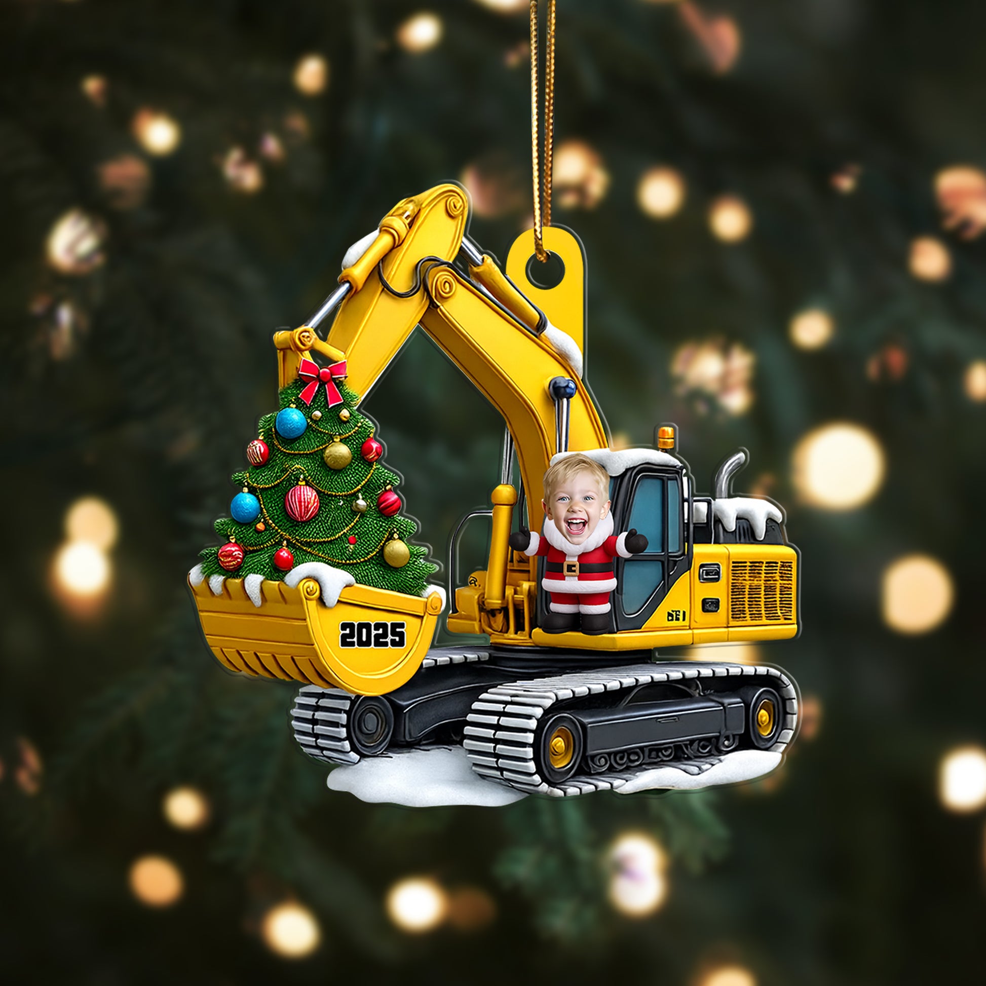 Personalized Xmas Excavator Construction Backhoe Kid Photo Ornament, 3D Effect Xmas Gift For Kids